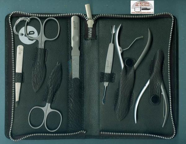 Kit manicure e pedicure, con strumenti in acciaio inox, per mani e piedi perfettamente curati , Made by Alpen Premana Italy.