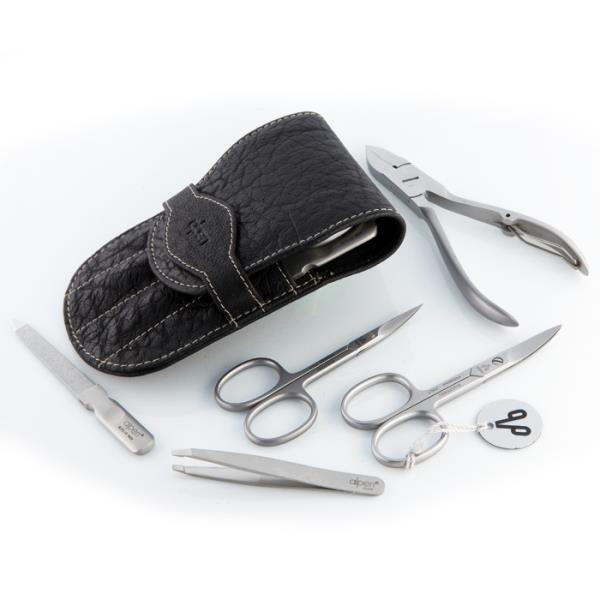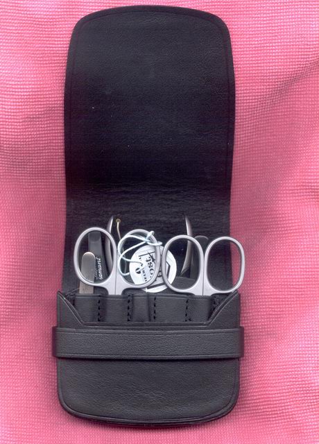 Alpen Italy 6875 Manicure case LEATHER CASE, STAINLESS STEEL TOOLS.