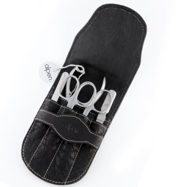 Alpen Italy 6875 Manicure case LEATHER CASE, STAINLESS STEEL TOOLS. Alpen quality tools.