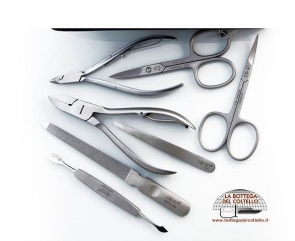 Manicure and pedicure kit, with stainless steel instruments, for perfectly cured hands and feet. Alpen Premana Italy.