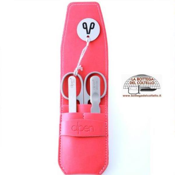 Manicure kit Made by Alpen Premana Italy. Pink leatherette case. Young Line of colorful manicure set dedicated to the boys and girls of all ages.