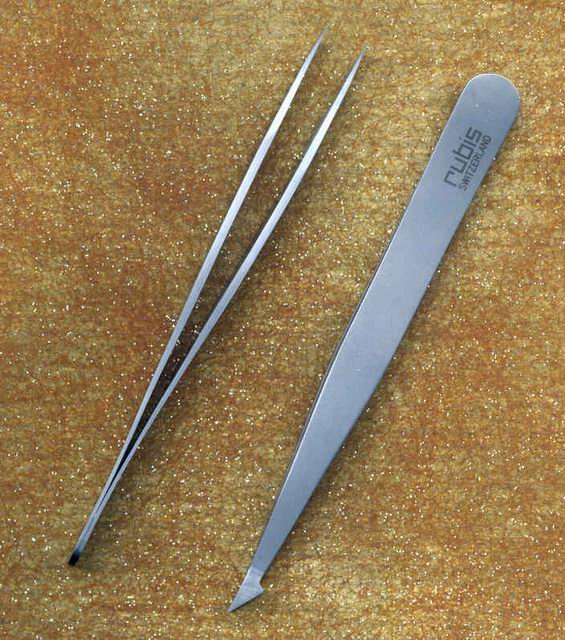 Double position, stainless steel. DUAL POURPOSE TWEEZERS.