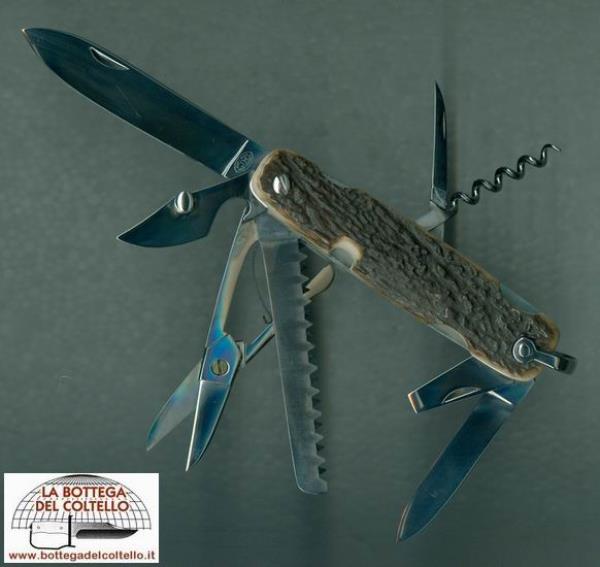 Stainless steel blades and tools, deer horn handle. Hand made by Mongin, the famous French knife makers family. The natural striations of the handle may be different from that reproduced on the image.