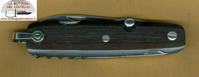 The noblest materials offered by nature are combined with the steel under the expert hands of the artisan. Always handmade, knives Mongin represent the union between beautiful and useful. ROSEWOOD handle, stainless steel blades and tools, mirror finished. Dimensions ~: overall length mm 810, blade mm 80, closed mm 100, weight gr 106. The natural striations of the handle may be different from that reproduced on the image. Suede leather pouch.