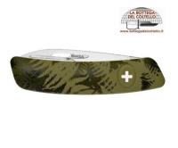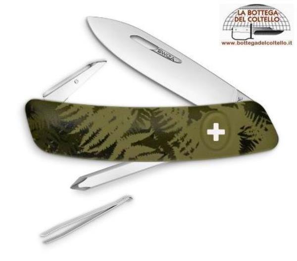 KNI.0020.2050 Silva with sure-grip, soft-touch handle and with a modern interpretation of contemporary architecture in Camouflage-Design. Its curved shape adapts to the palm, together with the blade-lock-system of the 75mm blade safe working is guaranteed. On Swiza website we find: