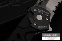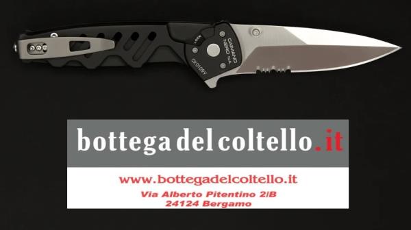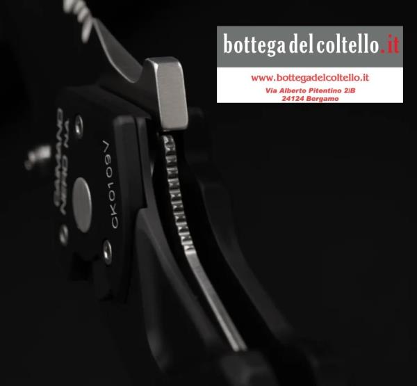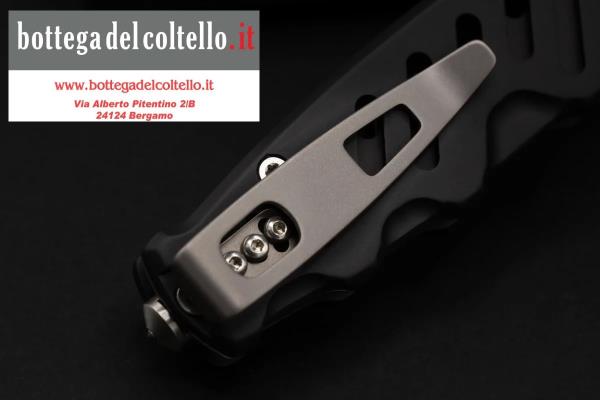 The bottom part of the handle is designed to enhance the grip for a rapid extraction of the knife from the pocket. It is also equipped with a hard-metal glass breaker. The DLC-coated titanium clip can be positioned in three different angles on both sides allowing to conceal the knife as much as possible inside the pocket.