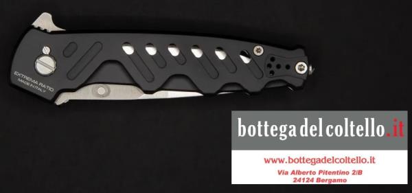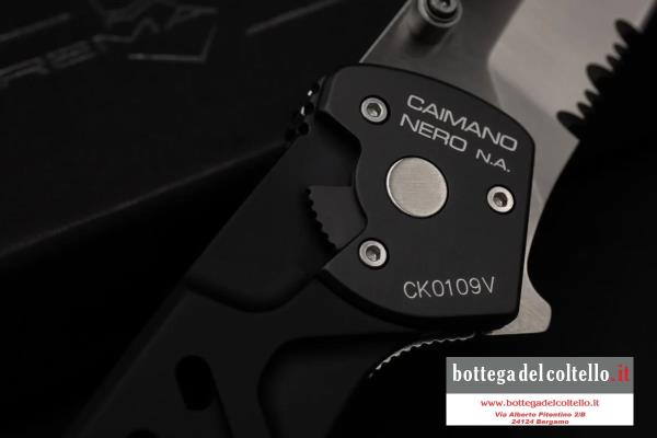 Extrema Ratio Caimano Nero N.A. Satin has the same characteristics of the popular Caimano Nero N.A., the non-automatic version of the tactical knife that Extrema Ratio has supplied to the G.O.I. (Operational Raiders Group) of the Italian Navy. The blade is 4 mm thick and has an asymmetrical spear point shape. The serrated part of the edge allows to cut highly resistant cables and fabrics without losing its sharpening. The blade has a satin finish.