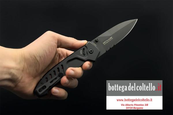 The handle is composed of two finely machined anodized aluminum scales, on which Extrema Ratio applies a hard oxidation treatment, which makes the handle more resistant to wear and corrosion. The grip is equipped with a hard metal rear glass-breaker. Two steel frames help to increase the strength of the entire structure, making MF1 EVO suitable for the heaviest uses.