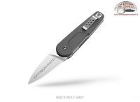 Item BDØ R Ranger Green cod 04.1000.0458/WG - Technical Sheet published by the producer: Weight oz. 1,83 - Blade Length 2,36" - Total Length 5,70" - Blade Thickness 0,098" - Blade Material: BöHLER STEEL N690 (58HRC) - Blade Finishing: STONE WASHED - Main Grid: FLAT - Handle Material: NYLON Wolf Grey color. Package: black cardboard box.