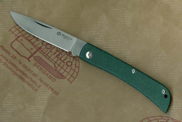 Maserin, sport cutlery in Maniago since 1960. Scout Line - Cod. 163/MV folding knife with D2 steel blade and micarta handle. Dimensions: overall length mm 185, blade mm 80, closed mm 100, weight gr 70. Package: cardboard box