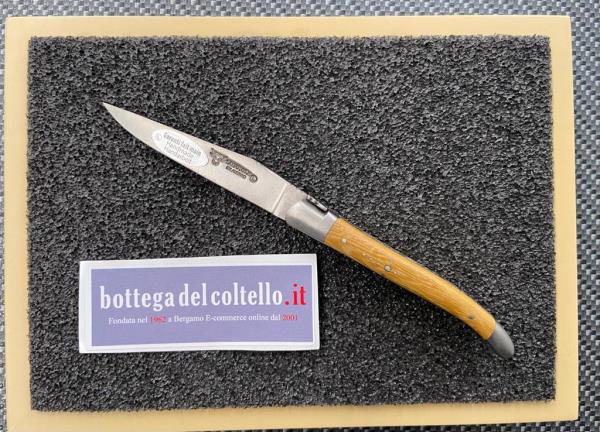 Satin finish folding knife. Difou wood handle. Dimensions: overall length 185mm, blade 85mm, closed 100mm, weight 60gr.