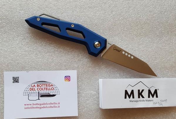 Made in Italy - EDGE model folding knife with blue anodized handle - MKM Maniago Knife Makers - Design by Graciut.