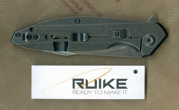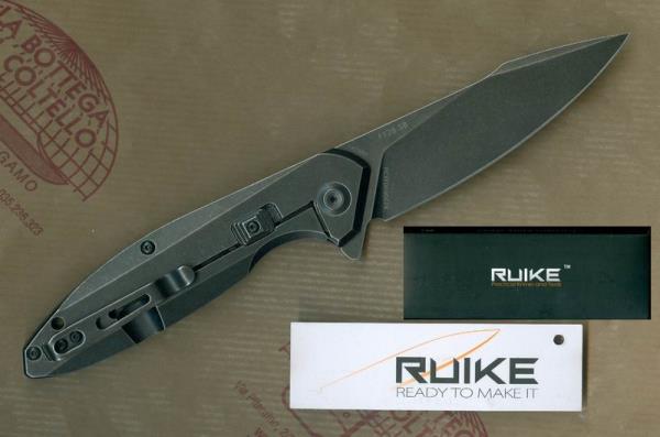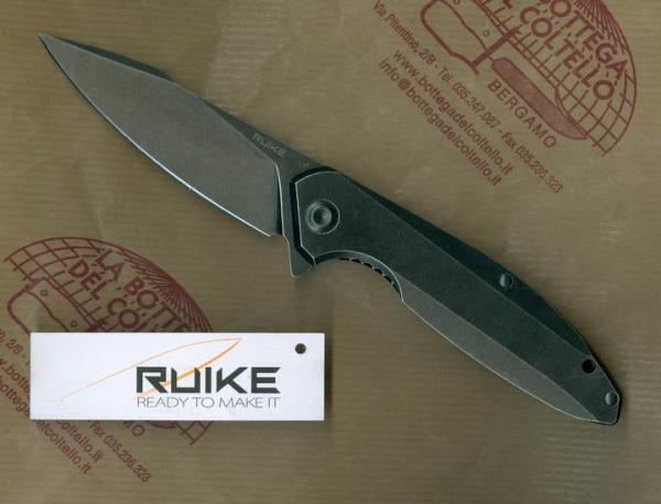 Ruike Art. P128-SB Folding knife. Dimensions: total length 217mm, blade length 93mm, closed 124mm, blade thickness 3.5 mm, weight 159gr. Handle material: stainless steel 3Cr14N. Blade material: 14C28N stainless steel. Frame lock and Beta plus locking system. Opening: flipper. Clip. Color: black. Packaging: cardboard box.