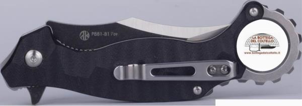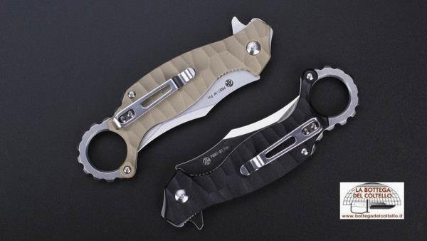 RuikeKnives Model P881-81 (Black) Developed from common Karambit knives, P881 is designed for tactical uses, outdoor uses and rescue uses where strong tip and sturdy edge point matter. As well as most of Karambit knives, there is also a rear safety ring on P881, along with ergonomically shaped and textured G10 handle, offering quite firm grip and comfortable reverse-grip hit.