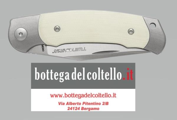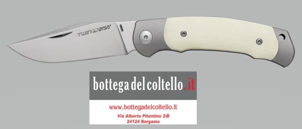 Twin GI Designed by Fabrizio Silvestrelli. Slipjoint folding knife, satin finish blade 3mm thick. Ivory G10 scales and two titanium bolsters single piece.