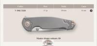 Blade: Böhler M390 sintered hardened stainless steel; cryogenic treatments; hardness HRC 59/61; thickness 4 mm; stone washed. Locking mechanism: liner lock hardened stainless steel W.Nr.1.4116. Backspacer: single-piece phosphor bronze, CNC processing. Handle: titanium with 3D CNC processing. Clip: shaped titanium. Screws: AISI 303 steel; bronze ring. Rotation Mechanism: thrust bearings. Weight 137gr, blade length 82mm, totale length 198mm. Packaging: reinforced cardboard box with logo.