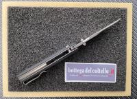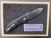 Button lock folding knife. 4mm MagnaCut steel blade with stonewashed finish. Suretouch black (G10 sheets and rubber)handle and titanium clip. Titanium backspacer.