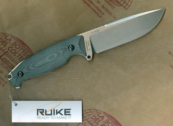 Chinese products, Ruike F-118G is a fixed blade knife with ergonomic handle. The blade is wide and robust with a strong tip.