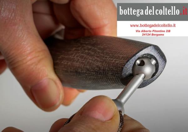 There is a steel key in the box that has to go through the nut holes and can be used as a lever to unscrew the cap. Acha was designed by Molletta and it is the first knife in lionSTEEL family built in this special way.