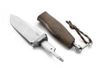 There is a steel key in the box that has to go through the nut holes and can be used as a lever to unscrew the cap. Acha was designed by Molletta and it is the first knife in lionSTEEL family built in this special way.