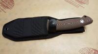 It's a very strong fixed blade knife, its blade is made of the most recently N690 stainless steel. Its handle is fixed to the blade by two screws that can be easily taken apart and reassembled using a 10-cents coin. 986 hunting knife is made of 1 blade, 2 liners of hardwood and 2 screws. In the hole inside the handle you can put windproof matches, a magnesium bar, a paracol (NOT INCLUDED). Dimensions: total length mm 210, blade mm 100. Black G10 handle. Design by Max Bacchilega. Packaging: cardboard box.
