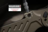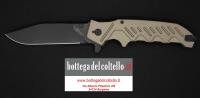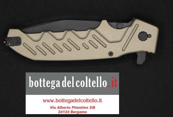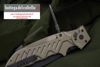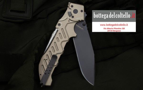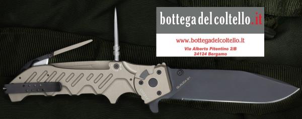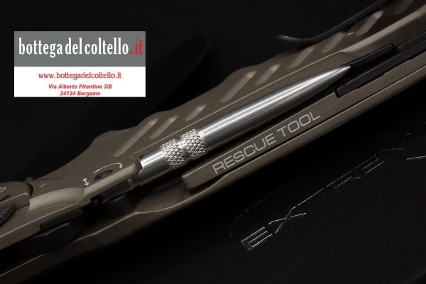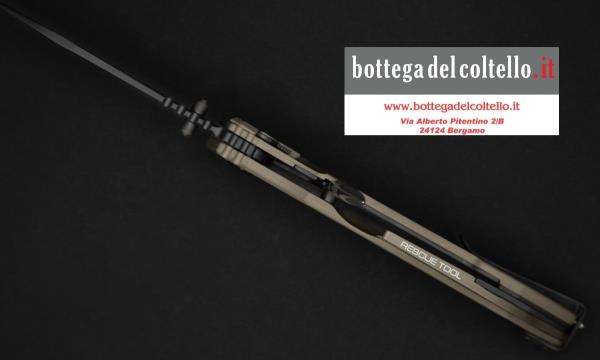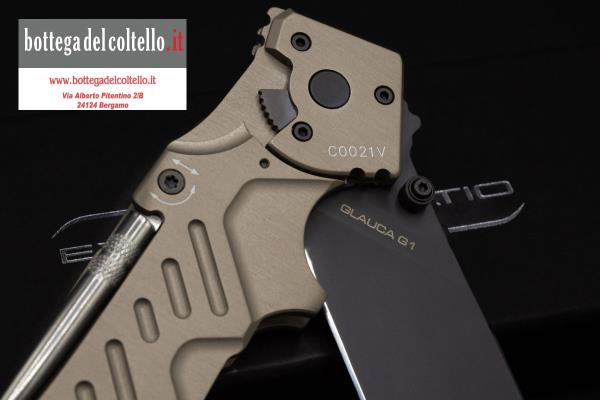 Glauca G1, evolution of the Glauca model, features characteristics that were specifically designed for the renowned GSG9, special unit of the Bundespolizei, which has officially adopted it. The handle is made of anodized anticorodal aluminum in tactical mud colour. It is equipped with a tungsten carbide glass-breaker on the pommel and a clip that can be set in three different positions (one of which is frontal). On the back there is a stainless-steel marlin spike, which can be locked when open, and a foldable rescue tool which allows the operator to make a quick emergency cut to free any injured from their clothing. This second tool is also excellent as a belt cutter.