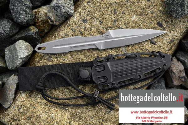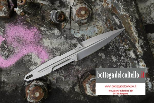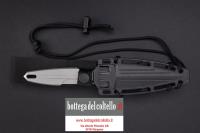 The spear point blade is heat treated to 58 HRC for best combination of edge retention and toughness. It has a false double edge to make it very effective in thrusting and piercing and has a full length fuller that flows elegantly from the blade into the handle. The blade is milled integral to the knife for better compactness and lightness, with minimum thickness yet with a pattern that reminds of the classical Extrema Ratio knife grip.