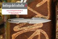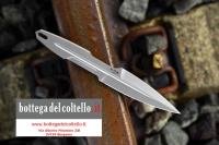 This profile creates two small guards and a comfortable thumb rest to prevent the hand from slipping towards the blade. On the pommel there is a diamond shaped skull crusher and a slot for a wrist strap or for giving the knife a paracord grip wrap.