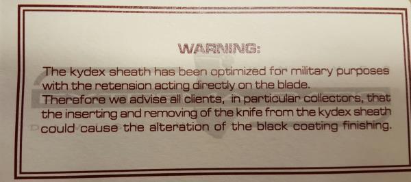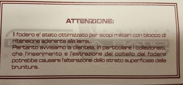 The kydex sheath has a basic retention that can be used alone for operators who need extremely fast knife use, and a removable locking lock if necessary. The knife comes with double safe to be fixed both on right and left side. An insert with a flat-blade screwdriver is available as an accessory.