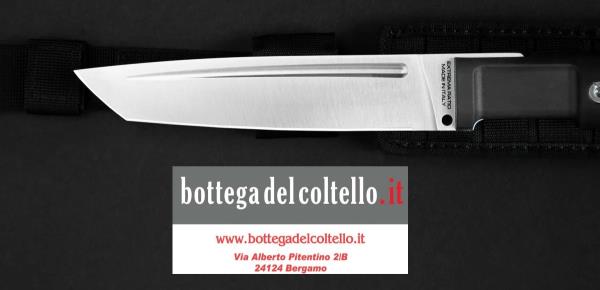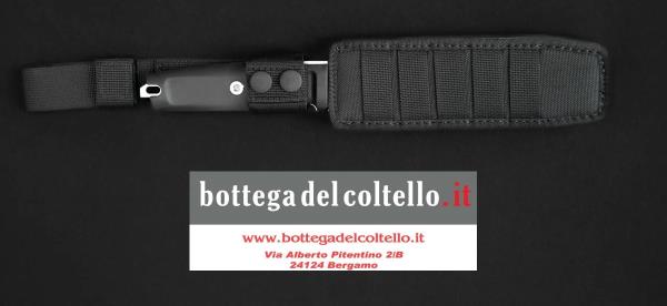 The black handle is made of Forprene, an elastomer that meets NATO standards due to its exceptional resistance to extreme conditions. The black Cordura sheath is equipped with M.O.L.L.E. system webbings that allow to carry it on tactical vests and generic belts and guarantee safety during carry, protecting the knife from shocks that could reduce its efficiency.