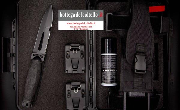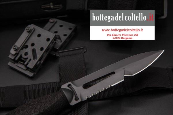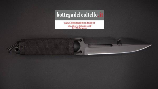 The land sheath (OPTIONAL, included on request) is MOLLE system compatible, designed to be attached to the tactical vest and carried inside a waterproof bag during underwater operations. All an operative has to do, if getting rid of his trilaminate drysuit after landing, is to draw the knife from its ankle sheath and place it in the tactical vest sheath. Primary functions: field operations, underwater operations, emergency tool, survival and combat.