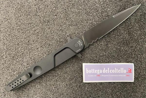 Technical sheet given by the producer: Weight: 137g 4,83oz - Blade Length: 123mm 4,84" - Total Length: 280mm 11,02" - Blade Thickness: 3mm 0,11" - Blade Material: Böhler steel N690 (58HRC) - Blade Finishing: MIL-C-13924 BURNISHING - Main Grid: flat - Serration: 20mm 0,78" - Handle Material: ANTICORODAL ANODIZED ALUMINUM - Packaging: cardboard box.