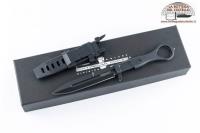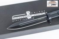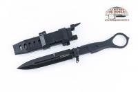 Technical sheet published by the manufacturer: Weight 87gr 3,1oz. - Blade length 118mm 4,64in - Total length 233mm 9.17in - Blade thickness 4mm 20,16in - Blade material: Bohler N690 STEEL (58HRC) - Blade finishing: MIL-C- 13924 Burnishing - Main Grid: Flat - Handle Material: NYLON / FIBER GLASS (FRN). Packaging: black cardboard box.