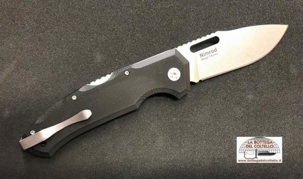 Nimrod, Folding knife very robust and at the same time light, comfortable to carry and use, easy one-handed opening. Made in Italy by Maserin. Black G10 handle.