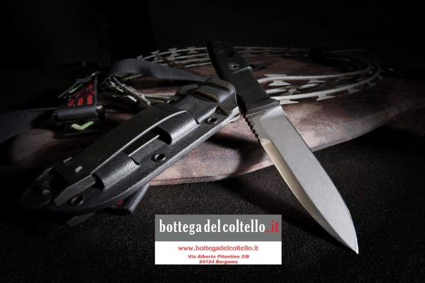 This Scout 2 stone washed Cod. 04.1000.0481/SW, like all Extrema Ratio knives, is produced with N690, a stainless steel with excellent cutting and mechanical quality and excellent level of resistance to oxidation. All the plastic parts of the knife: handle, hard sheath and belts are produced in polymers with high mechanical and chemical resistance. The metallic accessory components like screws and rivets are produced in metals virtually immune from oxidation. Total length 230mm. Packaging: black cardboard box.