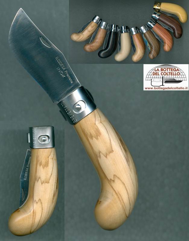 Sabot folding knife olivewood handle. Accurate execution of a typical Italian folding knife coming from the Aosta Valley. Made in Italy by Codega Premana. Mognol design.