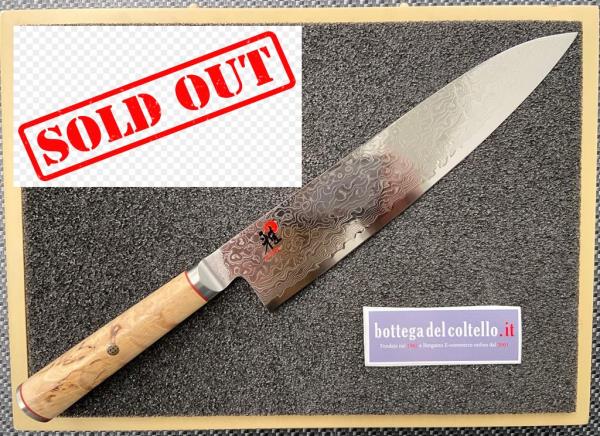 Chef knife, Miyabi 5000 MCD series, with Damascus steel 101 layers blade and karelian birch wood handle.
