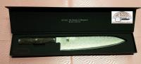 Beautiful workmanship "flower damask" 132 layers. Core blade made of Micro Carbide MC66. CRYODUR® blade treated at -196 ° to obtain an exceptional hardness, about 66 HRC. "D handle", also known as chestnut handle, made of "Black Ash", which offers an elegant contrast with the blade. Item 34051-201. Blade lenght: 20 cm. Hand wash only! Packaging: elegant black box.