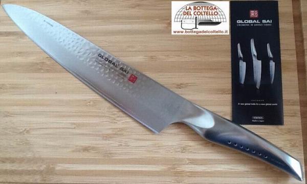 GLOBAL SAI KNIVES HAVE BEEN DESIGNED BY KOMIN YAMADA, CALLING UPON HIS 25 YEARS OF EXPERIENCE AND KNOW-HOW. THE HANDLE DESIGN IS ENTIRELY NEW AND INCORPORATES AN ERGONOMIC THUMB-REST TO EASE THE CUTTING MOTION.