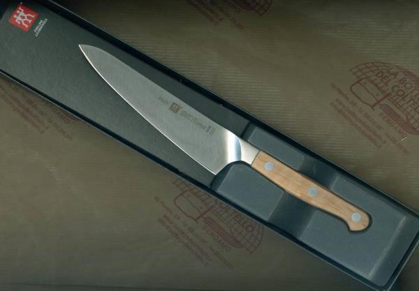 ZWILLING J.A. Henckels Solingen, Germany - Art. 38470-141 chef's knife, compact, 140mm/5,5" blade length. Special formule steel, hardness approx 56-58 HRC, FRIODUR ice-hardened, corrosion resistant. V-edge, high initial sharpness - long cutting edge retention. SIGMAFORGE, forged from one piece, safe and precise handling. Package: plastic and cardboard box. Zwilling recommends against cleaning knife in the dishwasher. A number of chemicals in your dishwasher can cause increased wear and tear of the blade and handle. The handle can have shades and natural streaks different from that reproduced on the image.