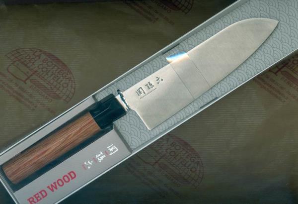 Kai Japan Santoku knife cm 17 Seki Mago Roku Red pakka Wood series arisen from samurai sword tradition.