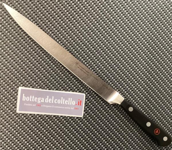 Wusthof 1040102920 Fish fillet knife made in Germany. Filleting delicate fish or preparing carpaccio is easier with this extra thin, flexible blade. 20 cm blade length.