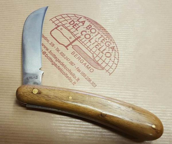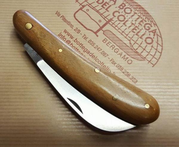 Steel blade. Wood handle. Dimensions: total length 200 mm, blade 80 mm, closed 120 mm. The natural streaks of the wood can be different from that reproduced image. Available on this web site the model for left handed.