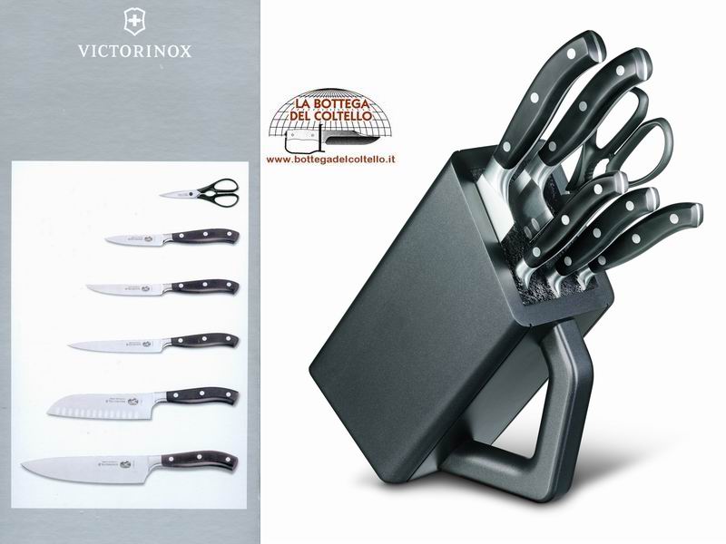 Grand Maître 6 piece cutlery block. Modern design. First quality stainless steel. Conically ground on full length and crosswise.