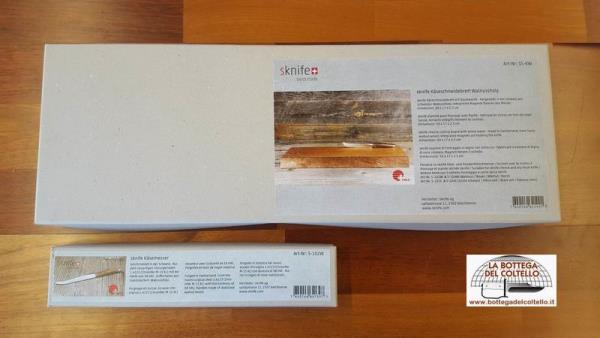Wooden chopping board and cheese knife: a winning co-worker to propose and enjoy dairy products. Swiss Made by Sknife.