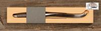 The surgical steel was primarily developed for Airbus and is today used in surgery for highly loaded parts – as bone screws – as well as in watchmaking. Throughout the fine structure a very high durability can be achieved and therefore the grind of the knife is much thinner. By replacing carbon with nitrogen it increases the corrosion resistance by factor four. Thanks to high hardness of 58 HRC, which is in the range of the Japanese knives, the knife stays sharp for a very long time.