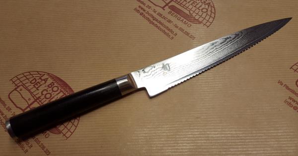 Kai Shun tomato knife DM722, blade length 6". The serrated blade makes this knife particularly suitable for cutting and slicing "difficult - to cut - foods" as tomatoes and peppers.