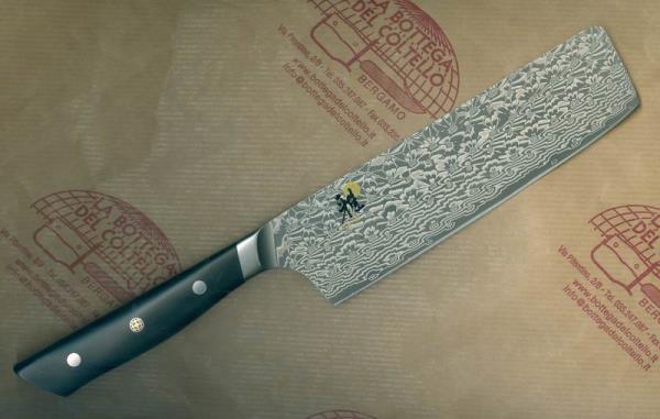 Zwilling Japan item 54485-171 Nakiri165. Chef knife . 49-layers San Mai blade. Fine carbide cutting center = FC61. Hibana - damask flower. Brass spacers. Central mosaic pin. Blade length 17 cm. Packaging: plastic and cardboard box. Not for bones!