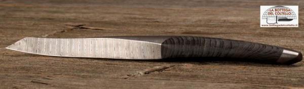 Sknife, Damast, 2 Steak knives: on Sknife's website we read that torsion damask steel is treated with two of the best knife steels with up to 1‘000 layers.