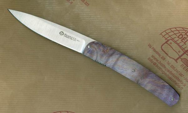 Steak knife Gourmet, bue briar handle, Morotti Attilio design, is an elegant pocket knife to cut meat at home and restaurant. Made in Italy by Maserin.
